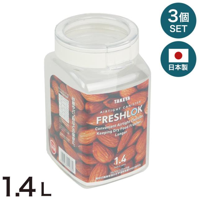 【3個セット】フレッシュロック 1.4L 角型 保存容器 日本製 ホワイト 白 タケヤ TAKEYA FRESHLOK キャニスター 密閉 ワンタッチ 調味料 収納 システムキッチン 引き出し 引出し 戸棚 冷蔵庫 1.4(代引