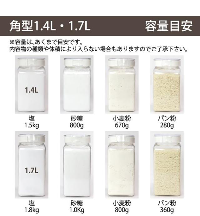 小麦粉・さとうなどの粉類はもちろんシリアルやペットフードの保存にもご使用いただけます。
