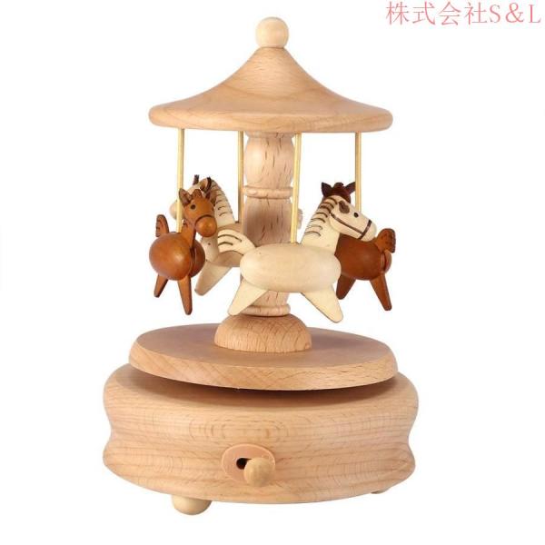 女の子のためのオルゴール、木製ヴィンテージオルゴール美しいターン馬形の木製工芸品ギフト家の装飾