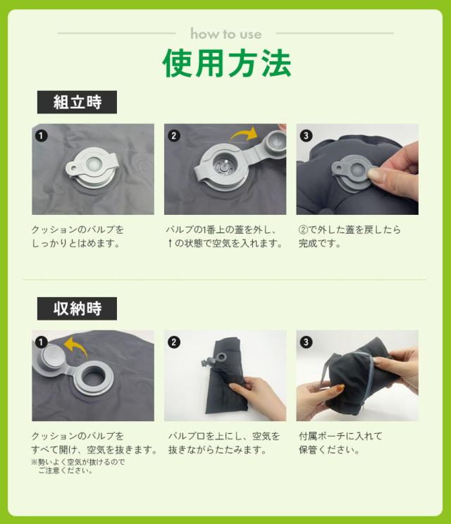 ※勢いよく空気が抜けるのでご注意ください。
