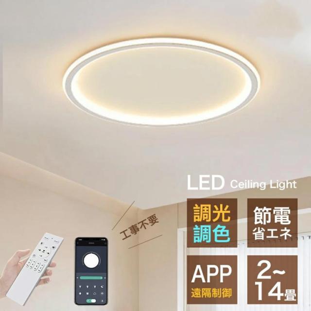 シーリングライト LED 北欧 おしゃれ 調光調色 6~14畳 照明器具 天井照明 シーリング照明 常夜灯 間接照明 電球色 スマホ制御 リモコン付き 寝室 リビング 和室