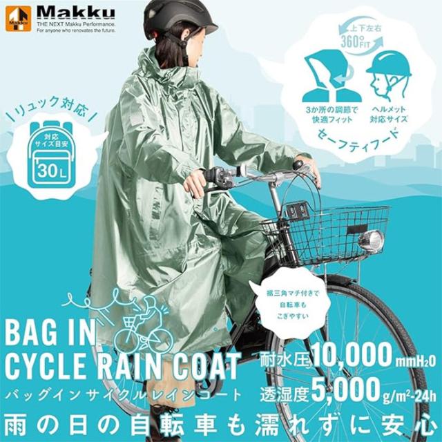 マック メンズ レディース サイクルバッグインコート レインウェア カッパ 自転車 アウトドア レインコート レインポンチョ アウトドア 登山 釣り ネイビー ベージュ 送料無料 Makku AS5150
