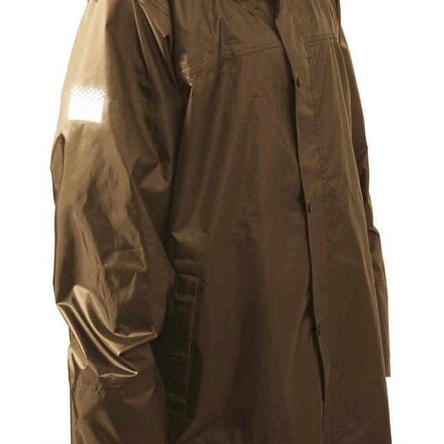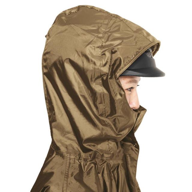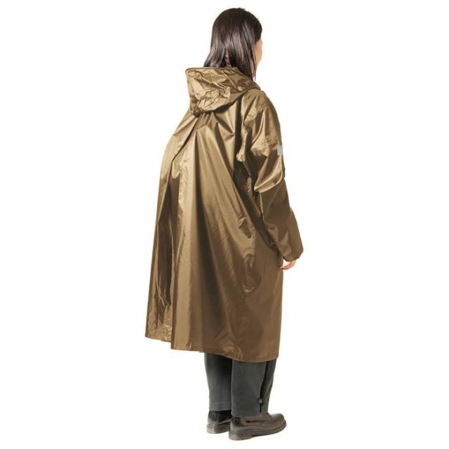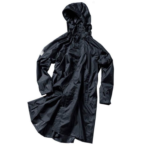 背中についたマチが広がり、バッグをまるごと収納可能なレインコートです。