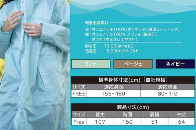 FREE BEIGE(ベージュ) MINT(ミント) NAVY(ネイビー) 雨具 かっぱ おしゃれ オシャレ かっこいい かわいい 男性用 女性用 ユニセックス 男女兼用 両用 Makku 最安値に挑戦!