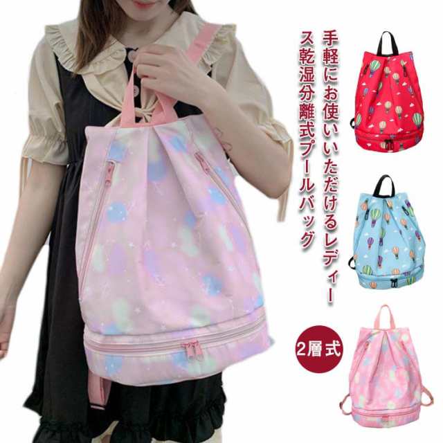 軽量 ビーチバッグ 濡れても大丈夫 収納 レディース 乾湿分離 可愛い シンプル リュック 2層式 シューズ入れ プールバッグ 防水 スイムバッグ 温泉 ピーチ 海水浴 水泳 海 ジム 男女兼用 大人 水泳教室 水着バッグ レジャー 夏 水遊び 丈夫 ギフト 送料無料