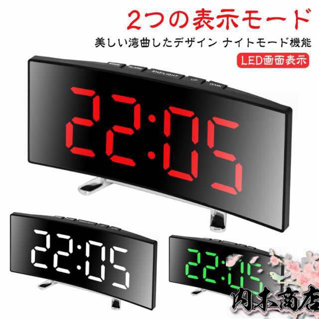 デジタル時計 目覚まし時計 ナイトモード 卓上 置き時計 卓上時計 LEDアラーム時計 デジタル表示 LED表示 USB給電 ミラー時計 スヌーズ機能 曲面パネル 曲面スクリーン 目覚まし時計 アラーム機能 日付表示 温度表示