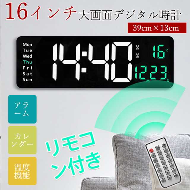 デジタル時計 目覚まし時計 16インチ 大型 LED 時計 大きな文字 置き時計 壁掛け時計 リモコン付き 温度計 アラーム タイ