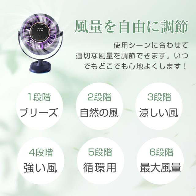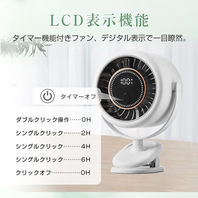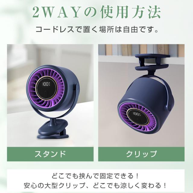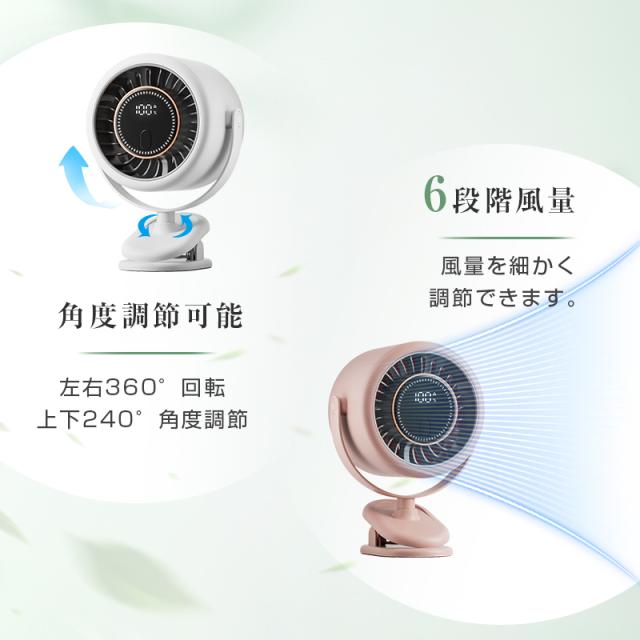 【2025年夏・新製品】 クリップ式 扇風機 サーキュレーター クリップファン ミニ扇風機 送風扇 卓上 静音 小型 DCモーター パワフル送風 強力 タイマー 自動OFF 6段階風量 涼しい 省エネ コードレス デスク クリップ固定 2WAY 4000mAh 【PL保険加入済み製品・安心】