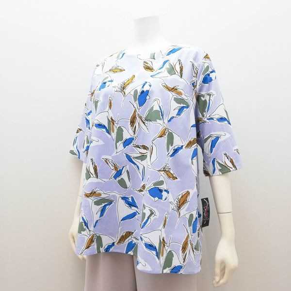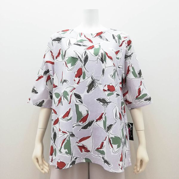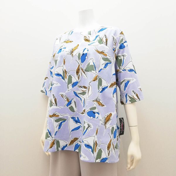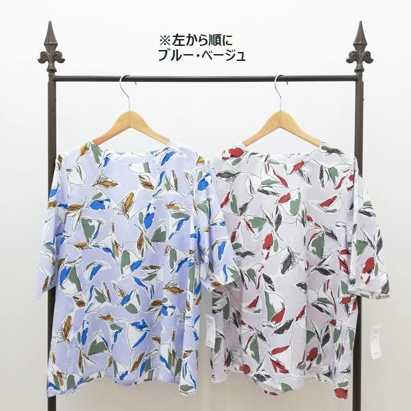 五分袖 七分袖 シャツ ブラウス トップス レディースファッション ハッパ柄 Tブラウス ストレッチ性なし うれしい丈 綿生地 涼しい 【送料無料】