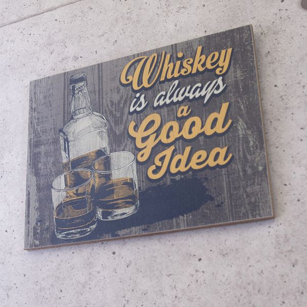 レリーフ アート ウォールデコレーション 家具 インテリア ウッドボード Whiskey is a Good Idea アンティーク ユーズドのような仕上げ 【送料無料】