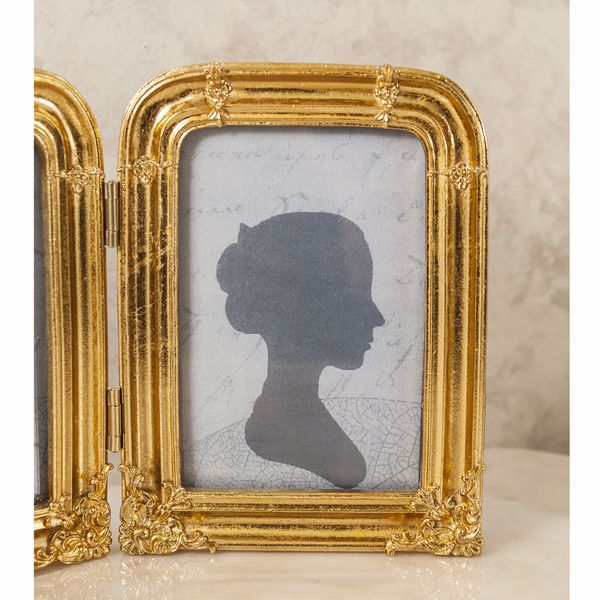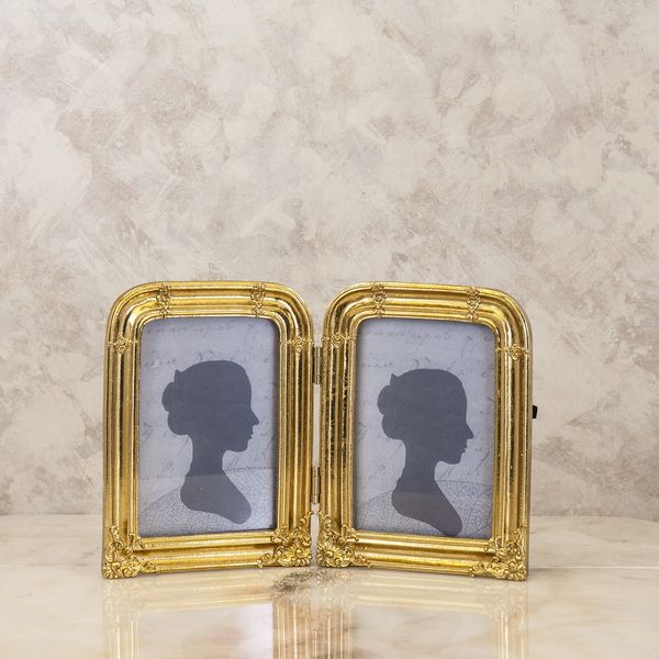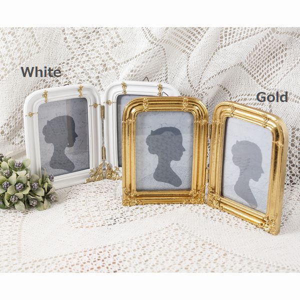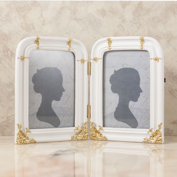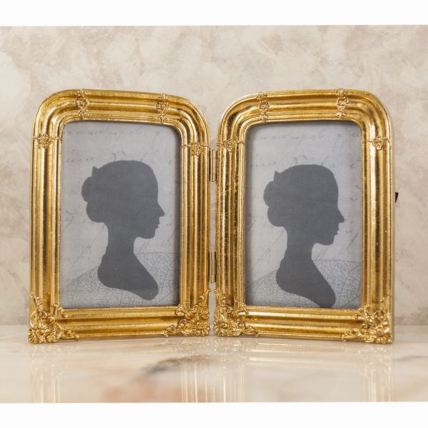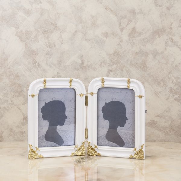 ヨーロピアン調のゴールドとホワイト+ゴールドの2カラーの2連のフォトフレームです。