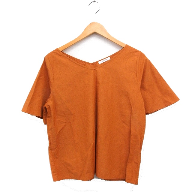 【中古】オペークドットクリップ OPAQUE.CLIP 半袖 ブラウス Vネック 無地 コットン 綿 38 M オレンジ /FT レディース