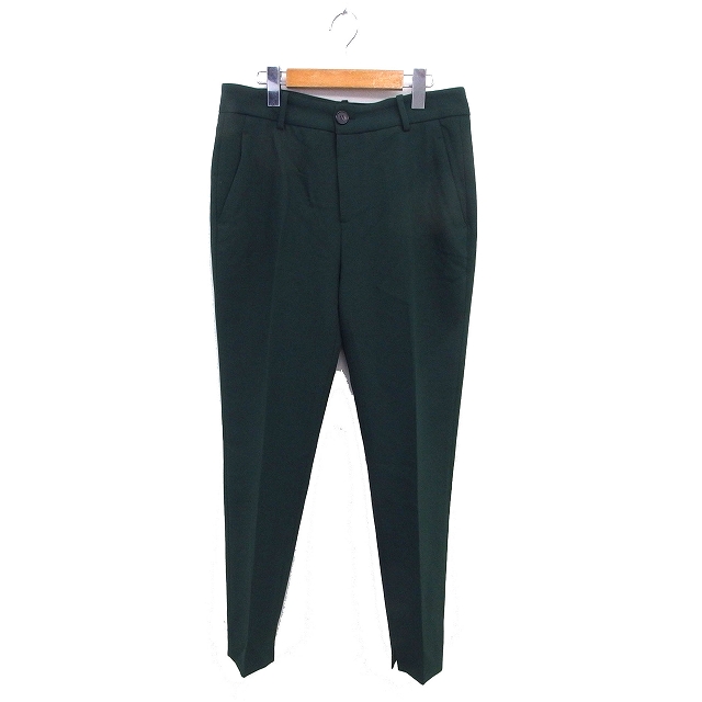 【中古】ザラ ZARA スラックス パンツ ストレート スリット ジップフライ 無地 M ディープグリーン /NT9 レディース