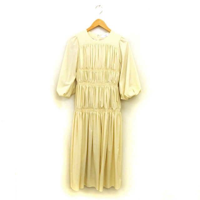 【中古】ティアード フレア ワンピース マキシ丈 シャーリング ボリュームスリーブ 七分袖 F 黄 イエロー /NT16 レディース