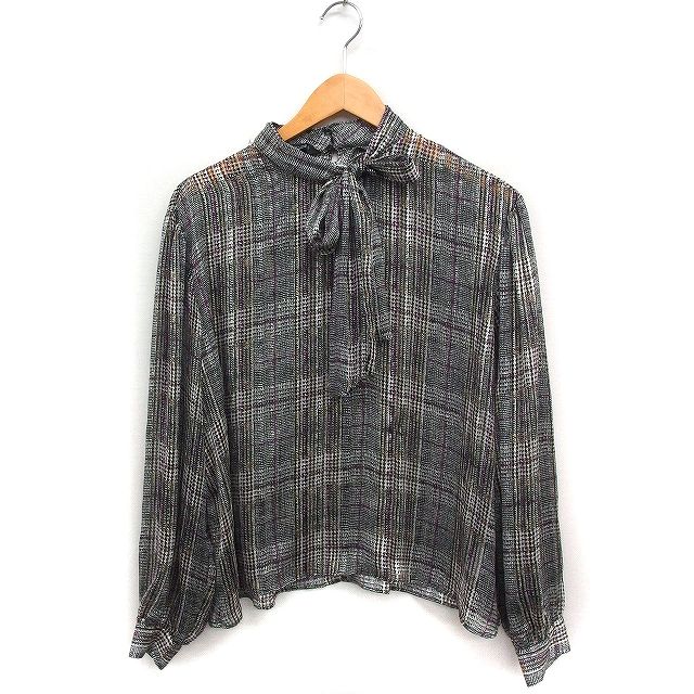 【中古】ザラ ZARA グレンチェック ブラウス 長袖 リボンネック L ブラック 黒 /FT46 レディース