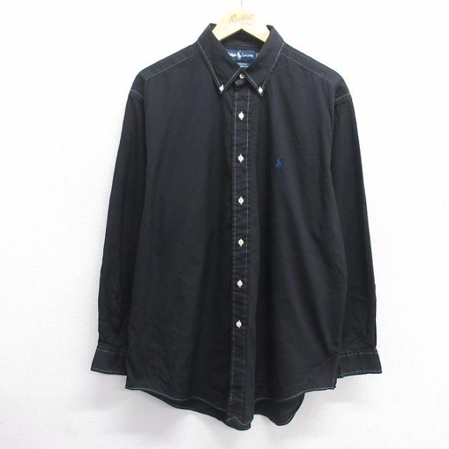 【商品名】 XL★古着 長袖 ブランド シャツ メンズ 90年代 90s ワンポイントロゴ YARMOUTH オックスフォード 大きいサイズ コットン ボタンダウン 黒