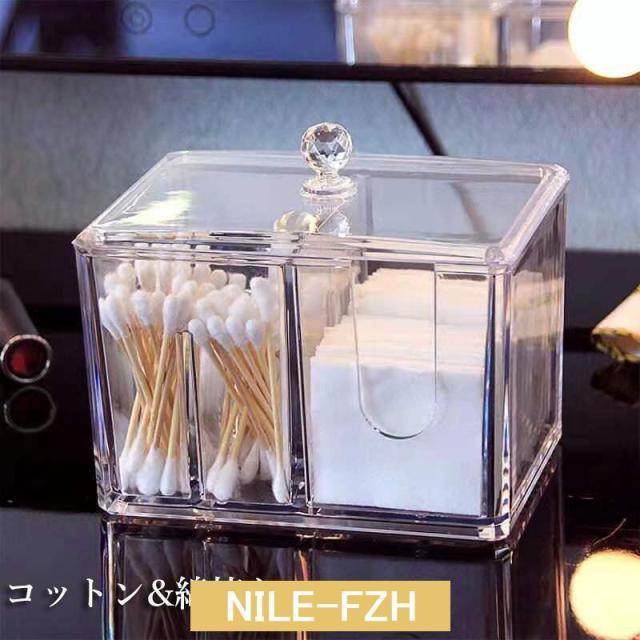 コットン 綿棒 ケース ボックス 化粧 メイク 道具 収納 小物入れ 蓋付き 洗面台 洗面所 クリア 透明