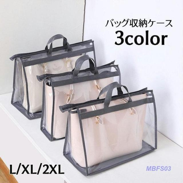 バッグ収納ケース 収納バッグ 持ち手付き 収納用品 透明 クリア スケルトン 中身が見える 型崩れ防止 防塵 防水 整理整頓 かばん収納 棚上収納 ク
