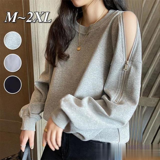 肩出し パーカー レディース トップス プルオーバー 無地 長袖 トレーナー 肩見せ スウェット カットソーオープンショルダー おしゃれ カジュアル ゆったり