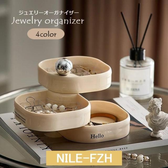 ジュエリーオーガナイザー 3段 アクセサリースタンド 回転式 小物入れ ネックレス ピアス イヤリング 収納ボックス