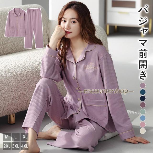 パジャマ レディース 前開き コットン 寝巻き 部屋着 敬老の日 長ズボン ルームウェア 長袖 無地 部屋着旅館 ホテル 春 冬秋 ナイトウェア プレゼント ギフト
