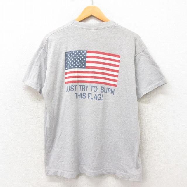 古着 スクリーンスターズ 半袖 ビンテージ Tシャツ メンズ 80年代 80s 星条旗 USA製 グレー 霜降り XLサイズ 中古 中古 古着