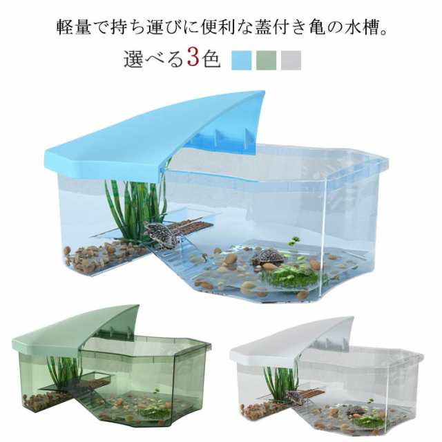 亀 水槽 ケース カメ 飼育ケース 大空間 ボックス 亀の水槽 蓋付き 両生類 カメの楽園 日向ぼっこ台 お手入れ簡単 分離式 ミドリガメ クサガメ スッポン ザリガニ 爬虫類 観察 エサ皿 大きいサイズ