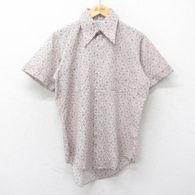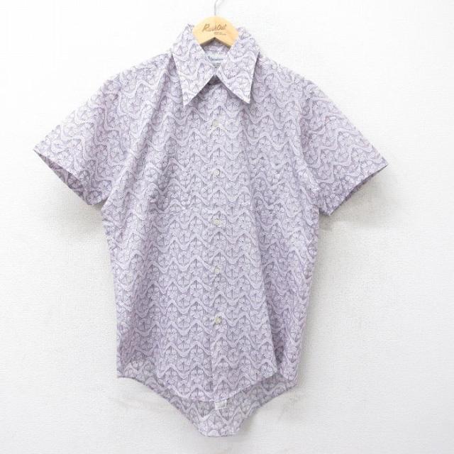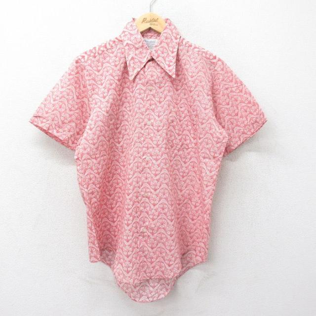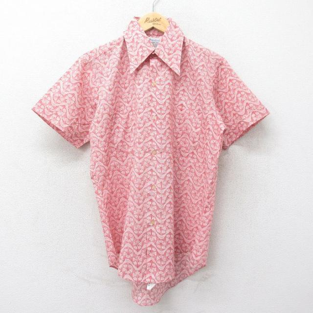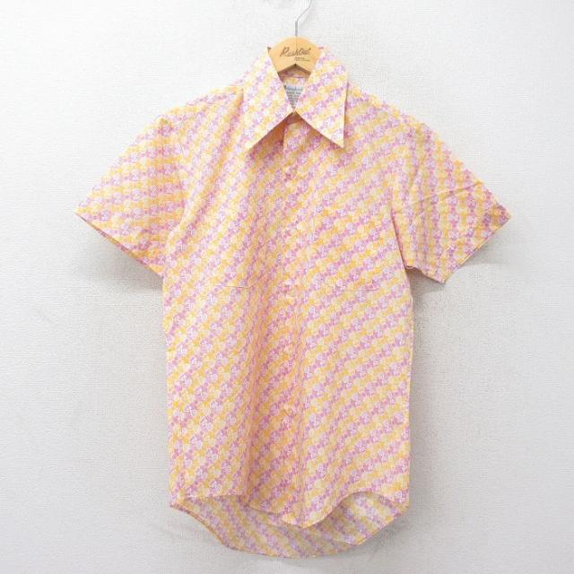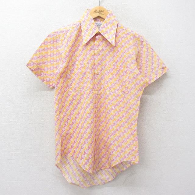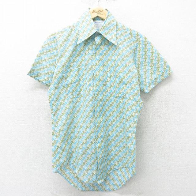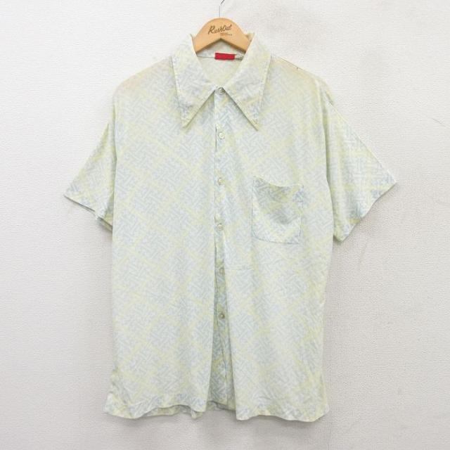 古着 半袖 シャツ メンズ 70年代 70s 総柄 薄緑他 グリーン XLサイズ 中古 トップス 中古 古着