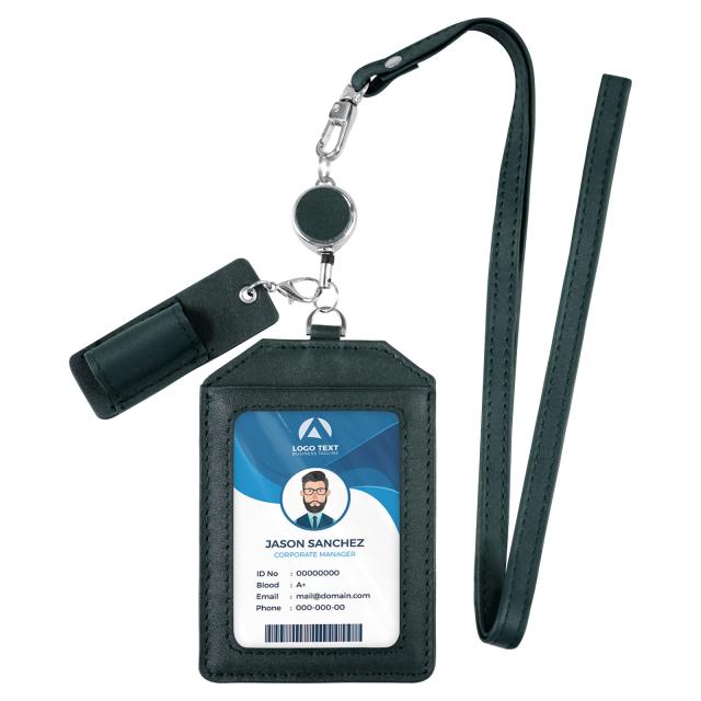 ◆商品名:boshiho IDカードホルダー 本革 カードケース リール付き 縦 首掛け 両面 ネームホルダー 定期入れ 社員証入れ 3枚 idカード収納 首掛