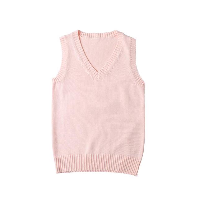 Blostirno スクールベスト 女子 学生 制服 ニート Vネック 通学用 無地 ゆったり ピンク(JP0028P-L)