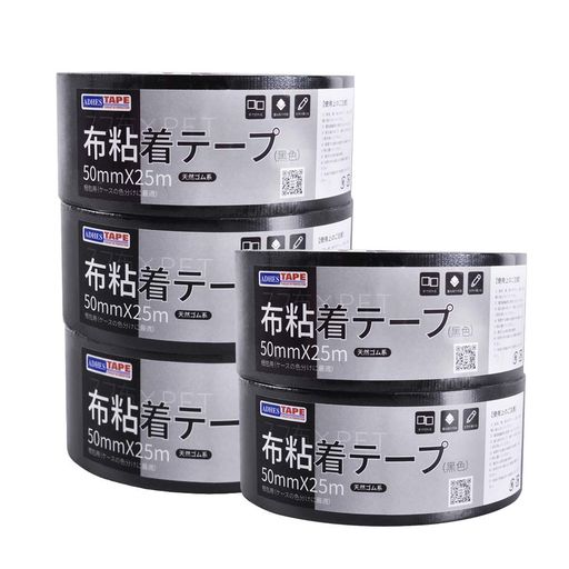ADHES布テープ ガムテープ 布ガムテープ 強力 黒 50MM×25M 5巻入り