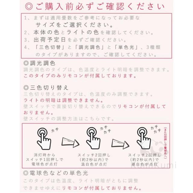 照明の色:昼光色,電球色,3色調光,調光調色リモコン付き