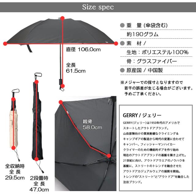ジェリー(GERRY)/超撥水 軽量・スリム スマート メンズ折傘 大きめサイズ 58cm カラビナ付き