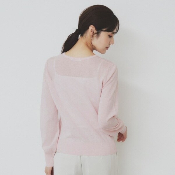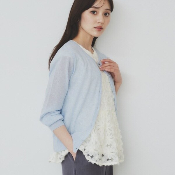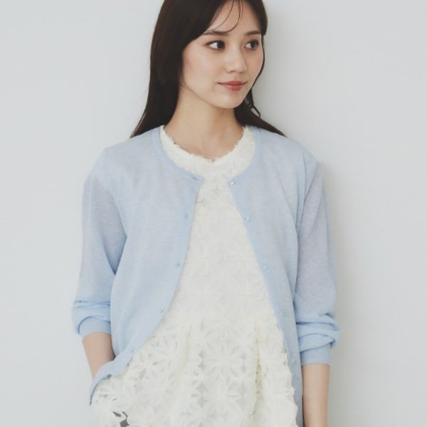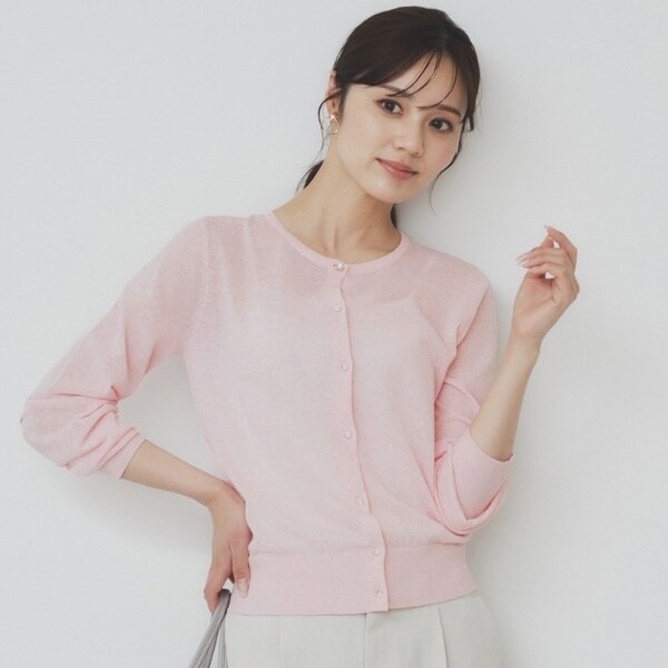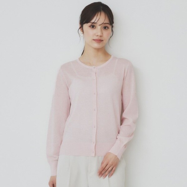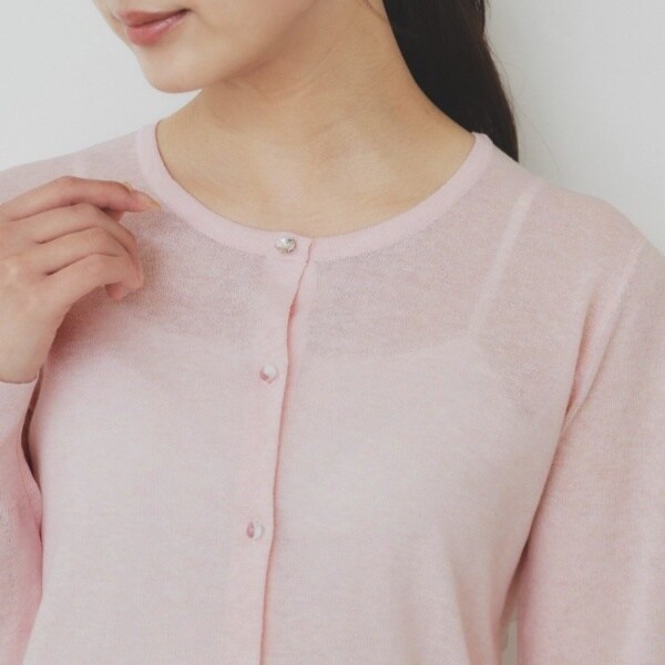 程よいシアー感が上品ビジューボタンクルーネックカーディガン