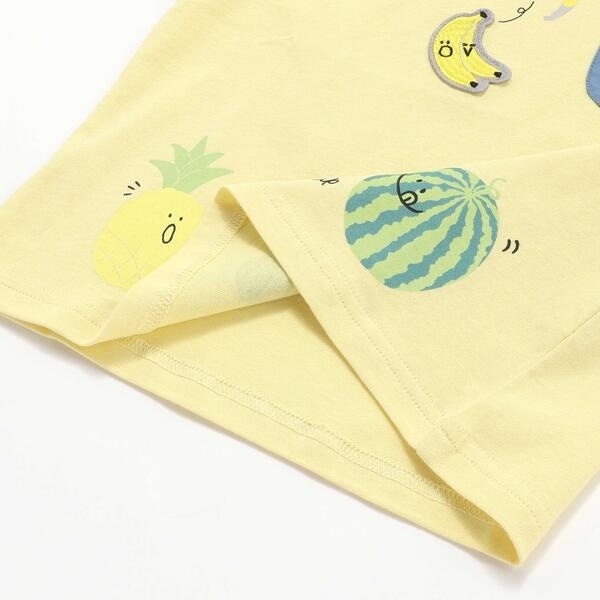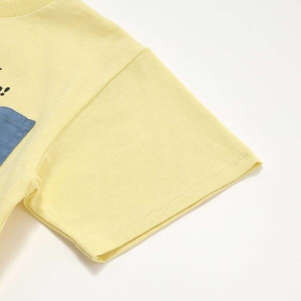 フロントにほどこしたモチーフがパッと目を引く男の子用の半袖Tシャツ。