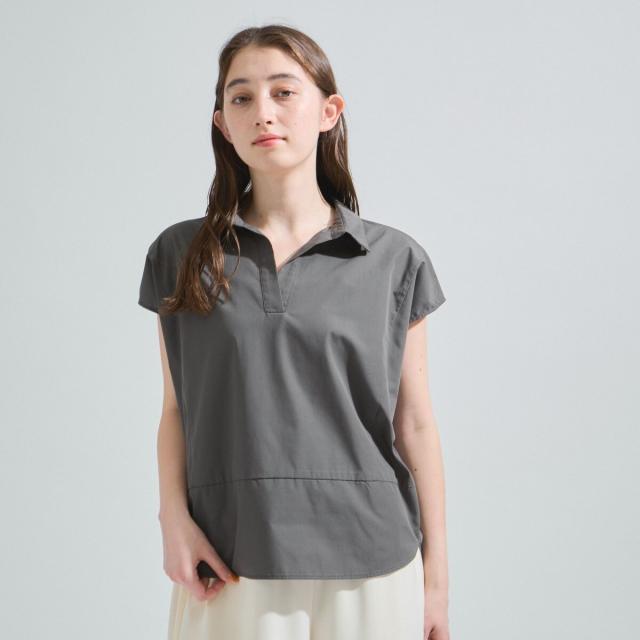 高密度に織り上げたハリ感が特徴のシワになりにくいテキスタイルを使用したスキッパーデザインのフレンチスリーブブラウスです。