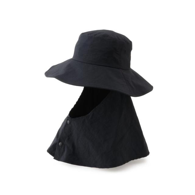 つばの長さ10cmでしっかりと日除けができる上、取り外し可能なネックガードのレイヤー付き。