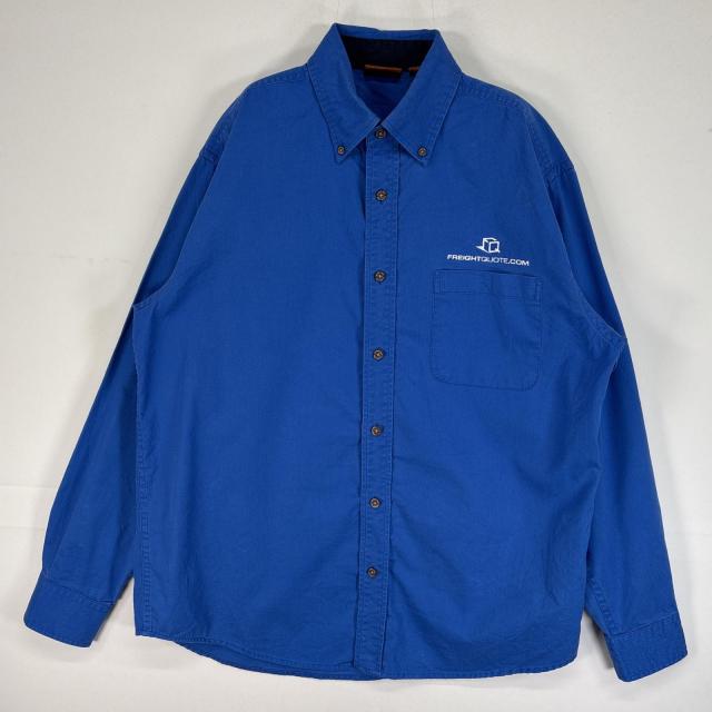 古着 HARRITON 長袖シャツ ボタンダウン 胸ポケ 企業 刺繍 M ブルー 無地 メンズ