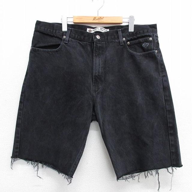 古着 ハーレーダビッドソン Harley Davidson ショート パンツ ショーツ メンズ 大きいサイズ コットン 黒 ブラック デニム W40 中古 古着