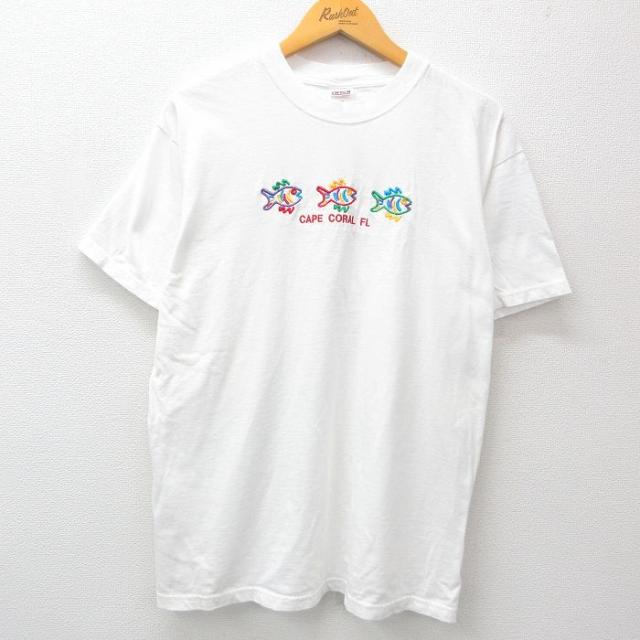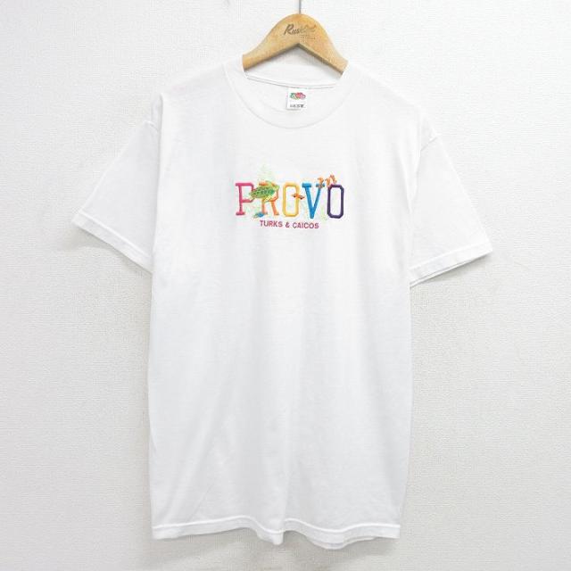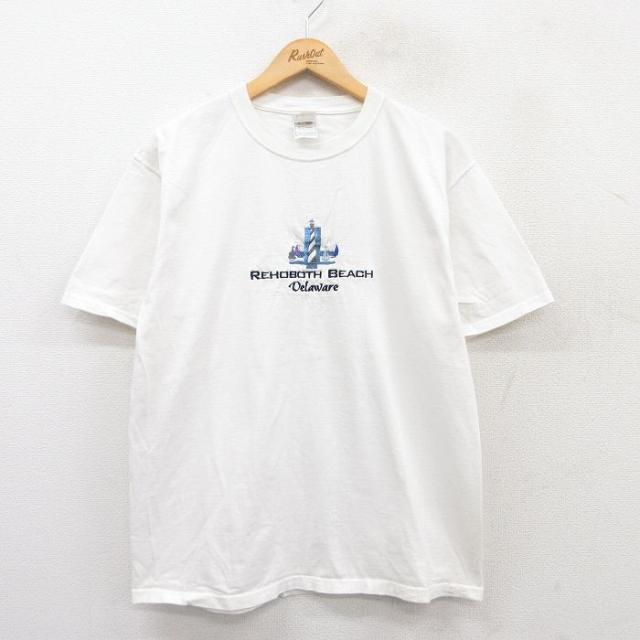 【商品名】 L★古着 フルーツオブザルーム 半袖 ビンテージ Tシャツ メンズ 00年代 00s リホーボスビーチ 刺繍 コットン クルーネック 白
