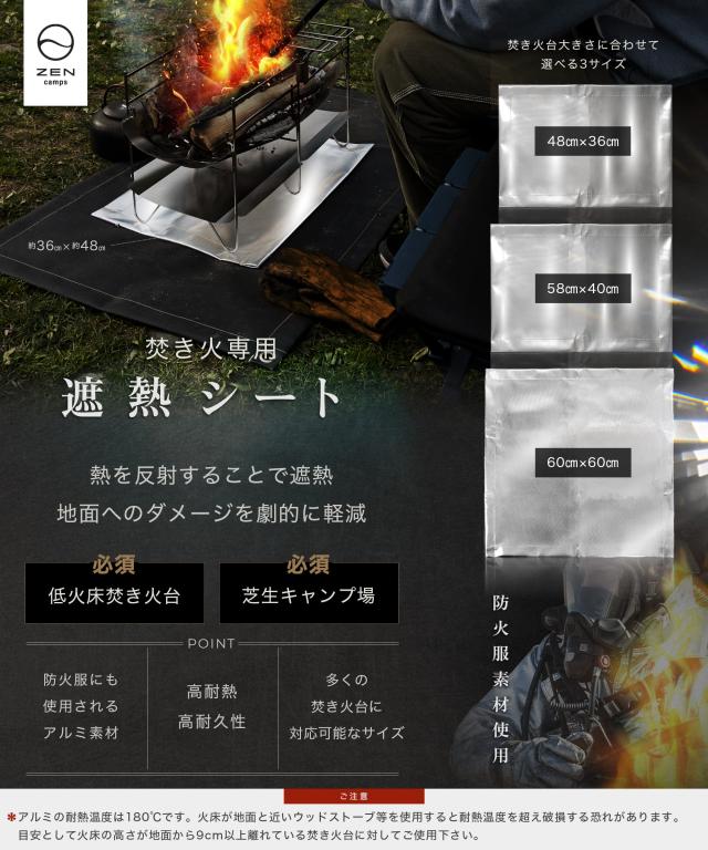 ZEN Camps 焚き火専用遮熱シート 熱反射シート アルミ素材 シルバー 60*60cm キャン プ 芝生 焦げ防止