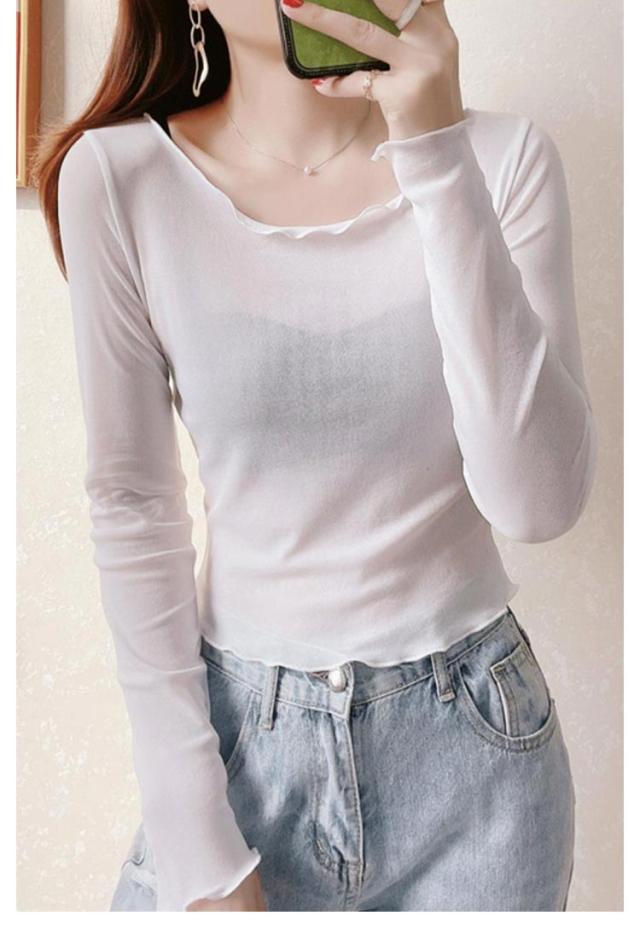シアートップス シースルー 無地 インナー レディース ランドネック 透け感 長袖 トップス 春 夏 重ね着 UV対策 シースルー トップス チュールレース レイヤード インナー 薄手 きれいめ シアー 無地 シンプル 送料無料