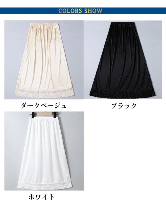75cm スカラップ ペチコート 裾レース ペチスカート スカート ロング レディース 透け防止 重ね着 透け対策 インナー ナチュラル 裾レース スカラップレース 下着 シンプル 春 夏 秋