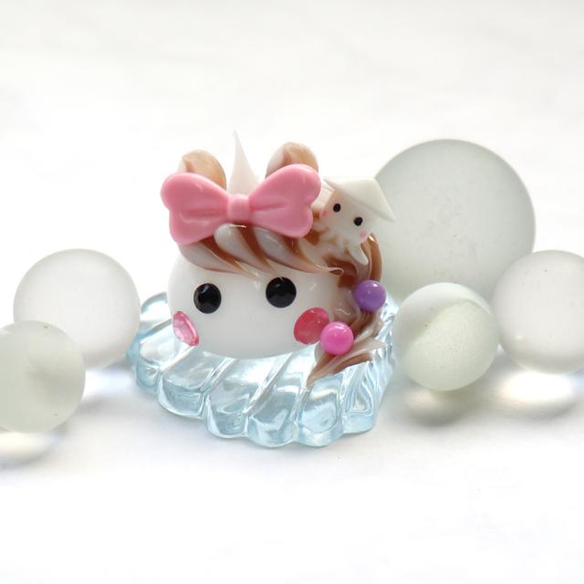 不思議なイカのパーツもほっぺママのセンスで可愛くなったよ?リボンの後ろにある猫耳はなんと手しぼり!髪型も手が込んでるね♪