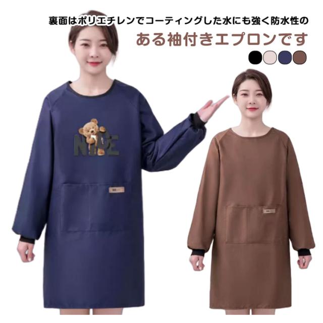 袖付きエプロン レディース メンズ 防水エプロン 長袖エプロン 割烹着 ポケット付き かっぽう着 スモック ロング丈 エプロン 保育士エプロン 介護士 防水 撥水 ワークエプロン かっぽうぎ 作業着 飲食店 仕事 ガーデニング 料理教室 家事 母の日 プレゼント 送料無料