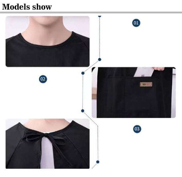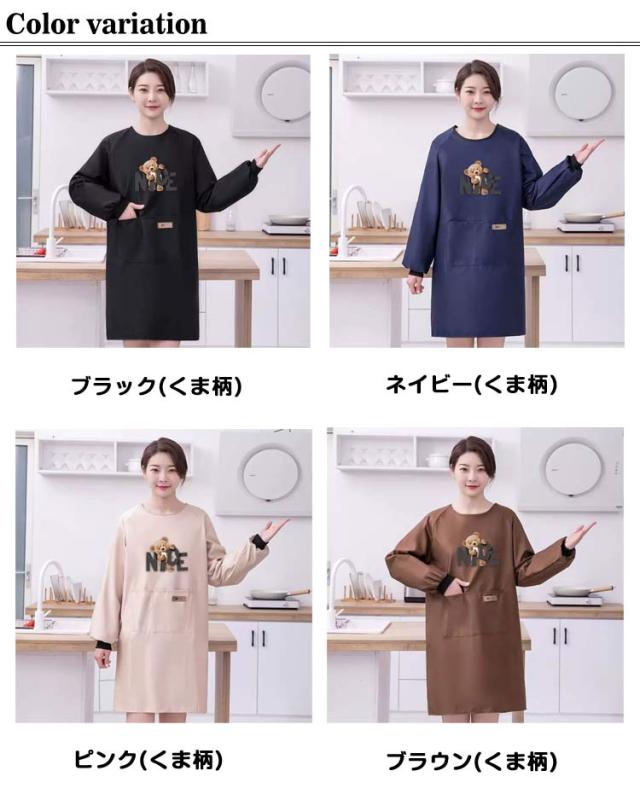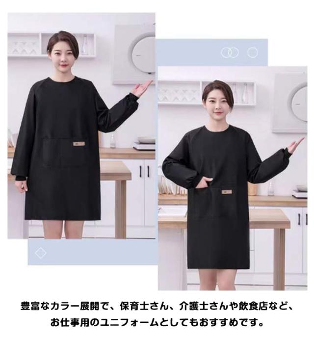 | 裏面はポリエチレンでコーティングした水にも強く防水性のある袖付きエプロンです。 毎日の家事やガーデニングなど、作業するのに丁度いい膝上丈なので、お仕事用にも◎ 袖元にはリブ仕様で、着るだけで腕まくりをした状態が水仕事などの家事にもぴったり。 スマホやハンカチなど小物が入れられる便利なポケットが左右についています! 豊富なカラー展開で、保育士さん、介護士さんや飲食店など、お仕事用のユニフォームとしてもおすすめです。 | |