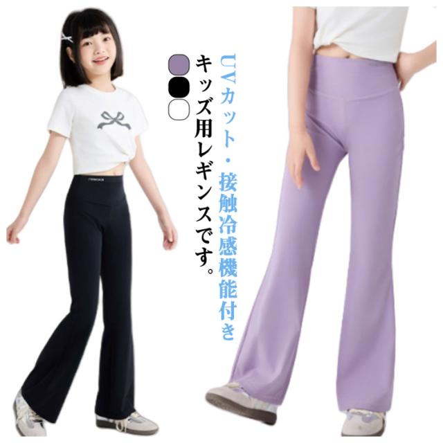 キッズ レギンス 子供 夏用 薄手 接触冷感 スパッツ フレアレギンス 男の子 女の子 夏 UVカット レギンスパンツ 10分丈 涼感 ひんやり UPF50+ 紫外線対策 無地 ボトムス 日焼け予防 ストレッチ UV対策 ジュニア 子供服 ダンス スポーツ 夏 タイツ 送料無料