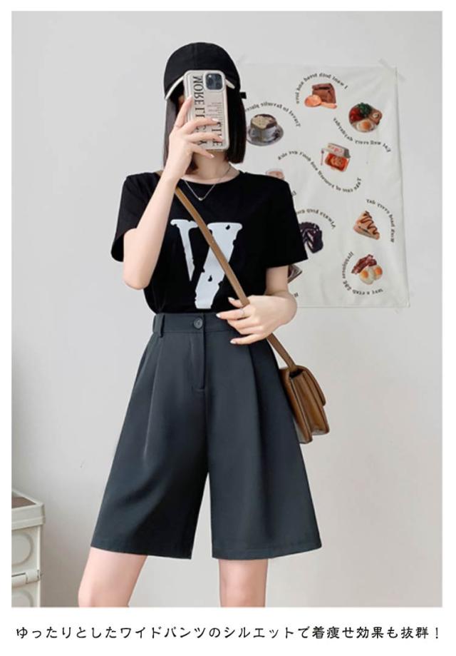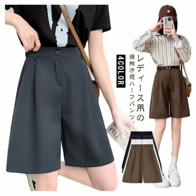 ハーフパンツ ワイドパンツ 韓国ファッション 接触冷感 スーツパンツ ポケット ゆったり ワイドショートパンツ ハイウエスト 夏用 無地 レディース 5分丈パンツ キュロット 短パン 大きいサイズ ウエストゴム 半ズボン 着痩せ ショーパン 春夏 薄手