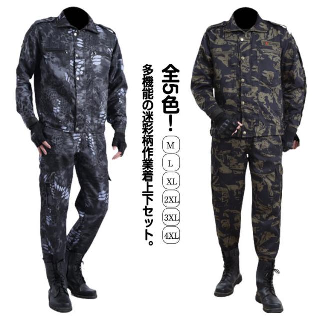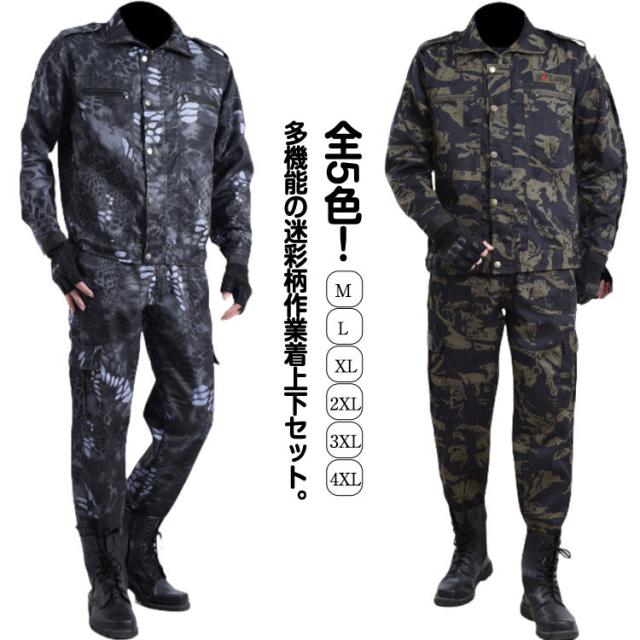 ワーク おしゃれ 送料無料 メンズ 上下セット ジャケット 迷彩柄 上下セット カーゴパンツ 春 ミリタリー 丈夫 アメカジ ロングパンツ マルチポケット カジュアル お仕事 作業着 秋 農業 修理工場 物流