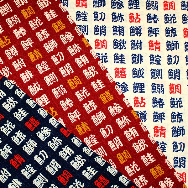 【10cm単位価格】 漢字 お寿司の漢字 湯呑 魚 魚へん 和柄 スケア シーチング 綿100% 生地 布 約110cm幅 KW3200-3 ゆうパケット2.5m対応 ( ハンドメイド 手作り 衣装 手芸 洋裁 裁縫 巾着 入園入学 パッチワーク 日本製 )